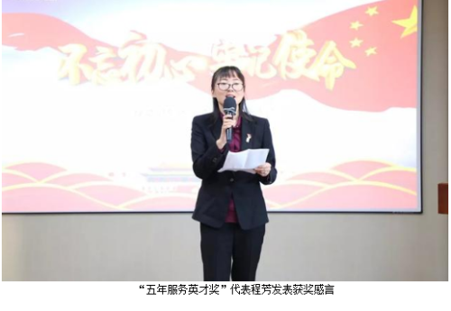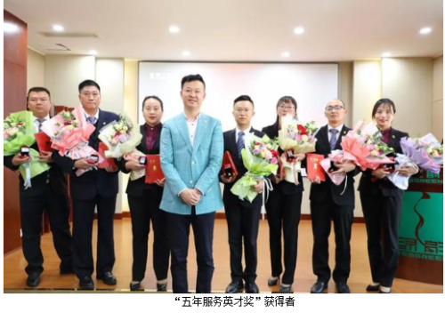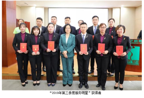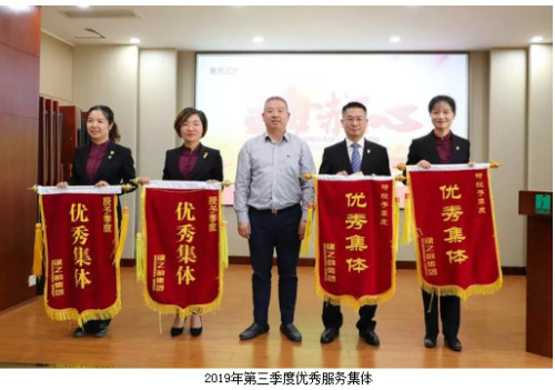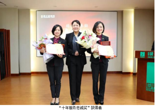 为表彰先进、凝聚力量,进一步激励全体员工的积极性和奋斗激情,大会集中颁发了“三季度优秀服务集体”“三季度服务明星”“五年服务英才奖”“十年服务忠诚奖”等奖项。业务服务部、新闻信息中心、市场管理中心、后勤组荣获“2019年第三季度优秀服务集体”称号,谭红、徐小峰、王雪、言芝艳、王壮、尹天弈、贺瑶、彭芳、刘静、刘博、高素丹、胡益军、戴明勇、彭赣躲、苏龙英被评为“2019年第三季度服务明星”,绿之韵集团副总裁刘淑娟、胡均安为获奖部门代表及个人颁奖。彭芳、许长征、程芳、王壮、杨建军、郭为、王雪、李琳、劳庆强、戴明勇、黄路荣膺“五年服务英才奖”,陈敏、吕晶、黄继民、罗婵荣膺“十年服务忠诚奖”,绿之韵集团总经理刘维利、董事总裁劳嘉先后上台为获奖员工颁发奖章与荣誉证书,并致以热烈祝贺。“五年服务英才奖”代表程芳和“十年服务忠诚奖”代表陈敏分别发表获奖感言。
