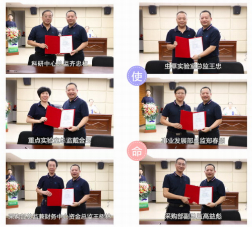 这是当天举行的以“新架构 新班子 新气象 新担当 新作为”为主题的安发生物第六届管理团队任命大会上的动人一幕。会上宣读了安发生物人事任命,向公司副总监及以上人员颁发了聘书或任命书,并签署了岗位责任书。