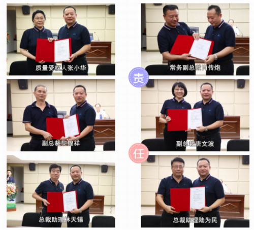 ▲高炜总裁与各板块、部门负责人签订岗位责任书。排名不分先后,仅按签订顺序