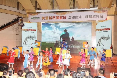 在呼和浩特站,近500余名环卫工人齐聚一堂,共同欣赏了一场精彩的歌舞表演。节目中的小演员们用他们独有的“绝活”现场书写出了“点赞环卫工人,你是最美的人,赞赞赞!”几个字,向广大环卫工人致敬。
