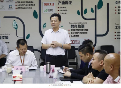 会议伊始,广东宇航人科技发展有限公司总裁蒋运权先生致欢迎词,热烈欢迎各地优秀市场领导人回家,并对公司接下来发展规划作了简要阐述。