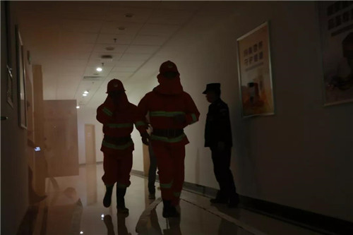 疏散组引导安发大厦内所有人员捂住口鼻,弯腰从安发大厦楼梯快速有序撤离,救援组急速抵达电梯及火灾现场,将电梯受困人员和现场受伤人员救出。整个撤离过程井然有序,所有参加演练人员均在短时间内撤离至广场安全区域。最后,经过消防人员的扑救,火势扑灭,浓烟散去。演练圆满完成。