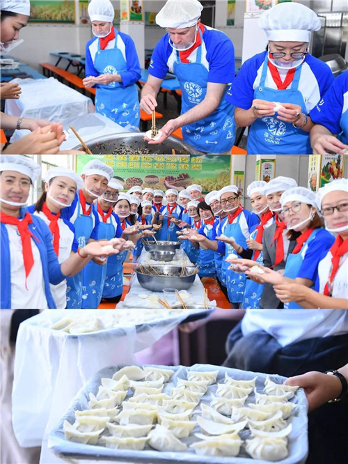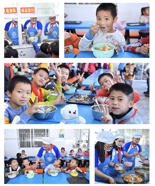 抵达现场后,大家为孩子们分发了美味营养的牛奶鸡蛋。紧接着又兵分两路,一批志愿者为孩子们搭建了电脑教室,另一批志愿者们走进校园厨房,认真做好清洁工作后,开始为孩子们准备营养美味的午餐。午餐时间,大家把一份份热气腾腾、营养丰富的午餐发放到孩子们手里,孩子们也真切的感受到了爱的温度,为了感谢叔叔阿姨的爱心,小朋友们用画纸和手工表达了他们的谢意。当志愿者们收到“感谢叔叔阿姨给我们爱加餐,你们辛苦了”的图画和留言时,大家心里异常温暖。