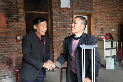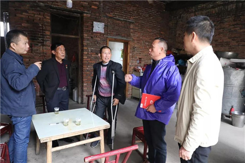 车刚到达巷子附近,拄着双拐的刘良仁已经在门口等着了。刘良仁因病双腿骨头坏死,不能正常行走、久坐和久站,他的妻子也有严重的腰椎盘突出,夫妻两人都没有劳动能力。家中三个女儿大的14岁,小的10岁,都还在读书。因病因学致贫,又没有劳动力,成为了家里久久不能脱贫的主要原因。刘良仁家中还是很早年建的红砖房,连家具都没有几样,厨房里现在还用蜂窝煤灶台,他笑着跟许达仲副书记说尽量降低生活成本,娃要读书,他和妻子身体还不好。此次浏阳市公安局经侦大队大队长蒋骞、副队长李伟与绿之韵集团党委副书记许达仲等一行为刘良仁送来了爱心慰问金和健康生活产品。