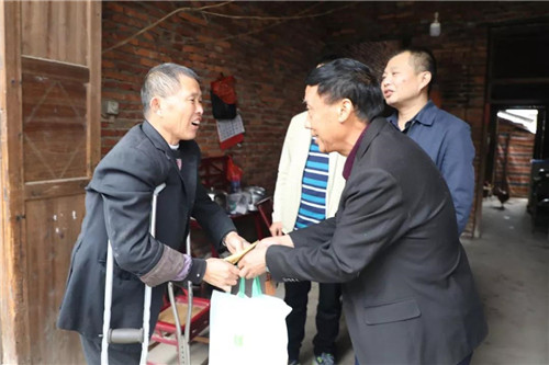 绿之韵集团党委副书记许达仲为刘良仁送上爱心慰问金和生活用品