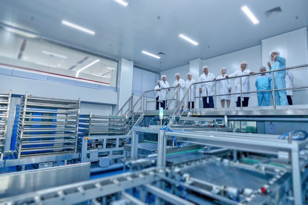 更换无菌衣帽、穿戴鞋套,经过严苛的消毒程序后,《中国健康经济白皮书2019》课题组一行进入无限极口服液自动化生产车间和产品检测中心实验室参观。不久前走在厂区里,还能闻到酱料飘香,沉浸在过小日子的“烟火气”里,而此刻步入科技感十足的现代化实验室,却犹如走进科幻电影里一样。只见玻璃间里,科研人员正在操作实验,各类精密仪器有序运转。