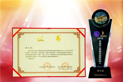 康婷集团刘小兵董事长荣膺“2019年度受人尊敬的品牌创始人”奖。作为康婷集团的品牌创始人,刘小兵董事长坚韧不拔、严谨沉稳、充满激情与梦想的同时富有担当和责任感。他一直在直销舞台上辛勤的付出,始终秉承“专注健康、关爱生命、造福人类”的企业文化和长期战略发展思路的一脉相承,凭借高瞻远瞩的决策和卓越的智慧,带领康婷集团一路克服重重困难,一步一个台阶,不断攀登高峰,创造诸多奇迹。刘小兵董事长强大的行业号召力及公信力获得行业内外一致好评和尊敬!