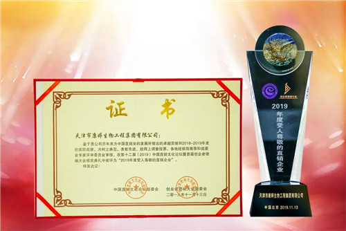 康婷集团荣膺“2019年度受人尊敬的直销企业”奖。康婷集团始终以诚实、守信、求质、创新为基石,凭借强大的科研实力和专家团队,依靠领先的技术开发能力,建立了市场化的研发机制,从而具有了强大的创新能力和品牌核心竞争力,已发展成为知识产权优势企业、国家高新技术企业、天津市科技领军企业。目前,集团已获得国家授权专利129件,还有64件发明专利在公开受理阶段。其中一项发明专利《一种微生物发酵法生产透明质酸的方法》荣获“中国专利优秀奖”;《微生物发酵法生产透明质酸的研究》科技成果获天津市科学技术进步三等奖。