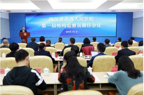 会上,四川省法院党组成员、政治部主任刘学锋宣读《四川省高级人民法院关于聘任第一届特约监督员的决定》,四川省省法院党组书记、院长王树江发言并为特约监督员颁发聘书、工作证。省法院党组副书记、常务副院长熊焱通报全省重点工作,4位特约监督员代表发言。