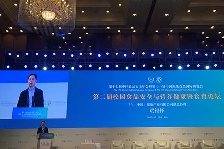 作为中国食品安全管理十强企业代表,三生(中国)研发技术副总贾福怀代表公司出席会议并应邀在“校园食品安全与营养健康暨食育论坛”上围绕“食育从娃娃抓起”的主题发表了演讲。