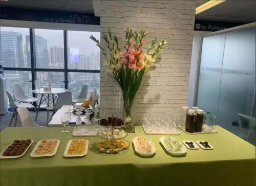 在典礼仪式前,分公司为到会场的代理商们准备了精美的点心以及用圃美多引以为傲的优质产品清体活力酵素调制的“酵素红酒”,大家在参观、相互交流,并为圃美多送上了祝福的话语!伙伴们发自内心称赞公司,愿与圃美多乐活(中国)共发展,传承“尊重生命、关爱友邻”的精神,将圃美多提倡的人与自然并重的“LOHAS”生活理念分享给更多的伙伴。