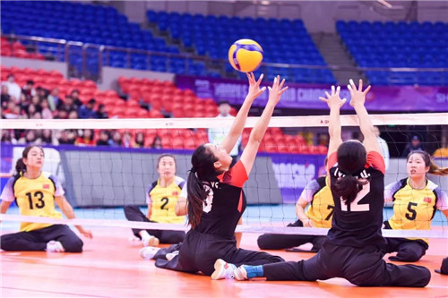 12月1日,喜迎女排世俱杯——以“同一个排球,同样的梦想”为主题的无限极•中国国家女子坐式排球队助威赛在浙江绍兴奥体中心体育馆举行。