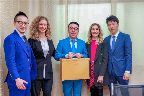 徐建成董事长与MARVISIA玛维莎全球品牌顾问Alessandro Recupero先生、创意总监Mirna女士合影