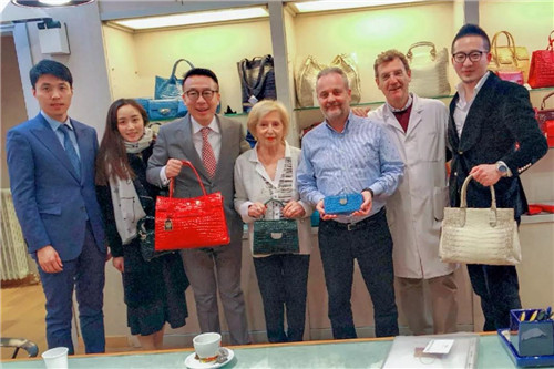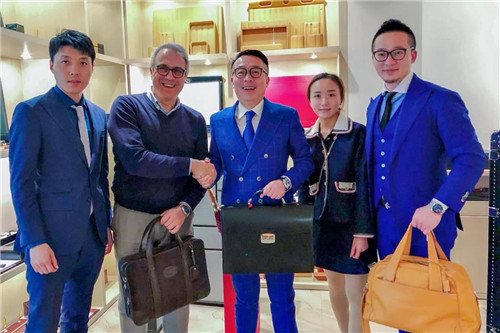 MARVISIA玛维莎国际时装有限公司总经理徐勇、绿叶科技集团采购部总监王浩宇、绿叶国际采购部副总监徐驰陪同徐董一同前往意大利。本次意大利之行,徐董携高管团队回访了多家位于MILANO米兰和FLORENCE佛罗伦萨的MARVISIA玛维莎皮具供应商(服务于STEFANO RICCI、BERLUTI、HERMES、CHANEL、CARTIER、CHLOE、BURBERRY、VERSACE、THOM BROWNE、BVLGARI等品牌),与MARVISIA玛维莎全球品牌顾问Simone Gibertoni先生、Alessandro Recupero先生会面详谈了MARVISIA玛维莎私人定制2020年全球发展战略,并聘请全球知名奢侈品牌设计师Cecilia女士成为MARVISIA玛维莎品牌的全球品牌总监,聘请Mirna女士成为MARVISIA玛维莎品牌的全球创意总监。