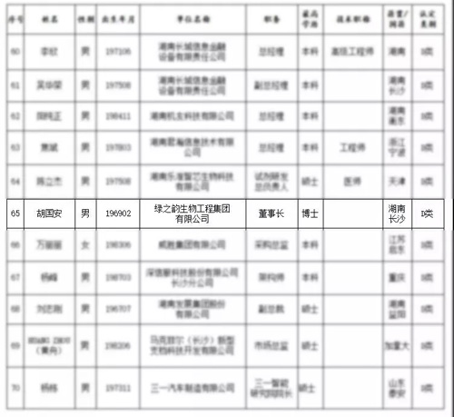绿之韵董事长胡国安入选长沙市高层次人才