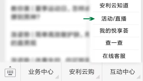 安利云购:底栏“互动中心”栏目进入