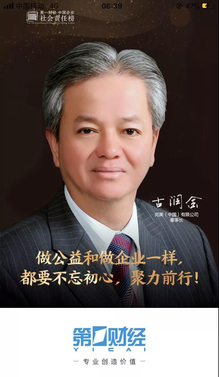 “做公益和做企业一样,都要不忘初心,聚力前行!” ——完美公司董事长古润金