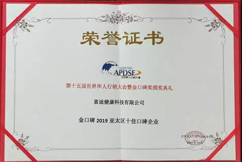 富迪获“金口碑2019亚太区十佳口碑企业奖”