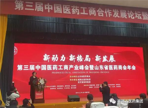 2019年12月19日-20日,第三届中国医药工商合作发展论坛暨山东省医药商会年会在济南成功盛大召开,本届论坛以“新动力、新格局、新发展”为主题,秉持“聚力、合作、发展、共赢”的精神,聚焦时代发展、产业政策、市场趋势、商业创新等热点,进行多层次的分享和交流;共同探讨医药产业的面临的问题、未来及挑战;搭建务实、高效的合作交流平台,发挥行业的引领作用,深化工商合作与协同,助力企业把握时代趋势,实现创新发展。