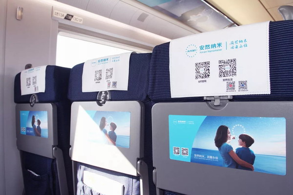 “安然纳米号”品牌专列,从车身彩贴、桌贴、海报、品牌天幕、语音播报、LED显示屏等方面,实现了安然品牌形象从车内到车外的全方位覆盖,听觉+视觉的多维度、高频次传播,让更多人了解安然,开启品牌传播新格局。