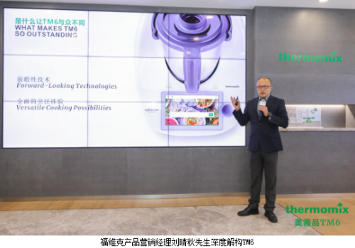 福维克中国总经理査生为本次活动开场致辞,表达了福维克始终秉持的理念“将高品质生活带给每一个家庭”的美好愿景。福维克美善品事业部亚洲业务发展总监Fredrik Lundqvist先生代表美善品事业部发表精彩演讲,向来宾介绍美善品及全新TM6料理机,展示了“智能由芯”的品牌理念,他表示:美善品TM6的上市再次提升了多功能智能料理机的行业标杆,希望美善品引领的数字化智能无油烟烹饪能将更多美味、便捷、健康带入中国消费者的家庭,让烹饪更轻松、更智能。随后,福维克产品营销经理刘晴秋先生带来的TM6 全新技术升级解构,通过与传统烹饪的对比,为来宾生动展现了福维克美善品TM6的研发创新、前瞻技术、精准操控和智能延展。