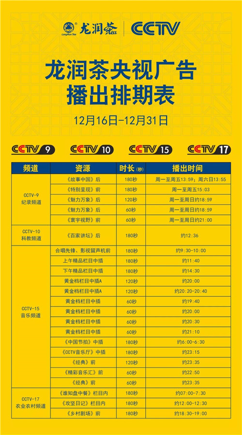 2019年12月25日,在龙润茶与中央电视台达成战略合作,于CCTV-2、CCTV-6、CCTV-7、CCTV-9、CCTV-10、CCTV-13、CCTV-15、CCTV-17投放龙润百家姓茶广告后,龙润百家姓茶与云南专致广告有限公司也正式签署战略合作协议,携手今日头条、抖音、西瓜视频、火山小视频、巨量引擎等平台共同推广中国定制茶礼。