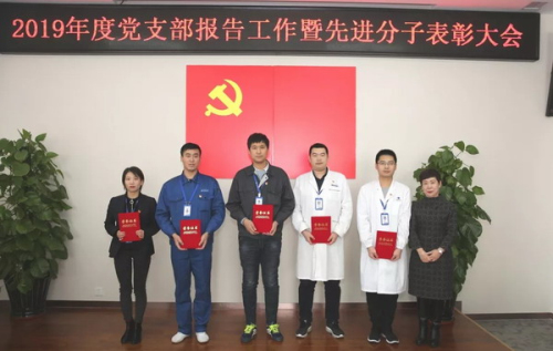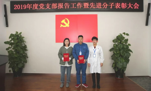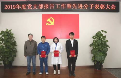 工作报告完成后,对获得2019年优秀党员5名:杨刚垂、张冉冉、孙麟、蔡长荥、盛凌;承诺制先进个人3名:周兆明、韩荣美、金成龙;优秀工会代表3名:范培浩、葛皓、花蕊和优秀团员2名:张凯、曹雪进行了表彰,党支部邀请集团总裁杨琪为5名优秀党员颁发了荣誉证书和奖品,支部委员为承诺制先进个人、优秀工会代表、优秀团员颁发了荣誉证书和奖品,表彰他们在2019年工作中取得的成绩和优异表现,以作鼓励。
