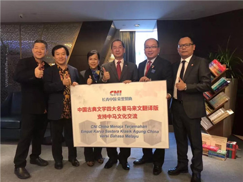 四大名著《红楼梦》、《三国演义》、《西游记》、《水浒传》是中国传统文化的瑰宝,经过马来西亚多位翻译家10年的努力,翻译工作于2018年完成,并在同年8月19日于北京举行四大名著马来文译本发布会,由马来西亚首相敦马亲自主持。发布会中,CNI大中华区总裁白镜亮在马来西亚首相敦马的见证下代表CNI长青中国鼎力赞助中国古典文学四大名著马来文版的翻译工作,并移交赞助支票于马来西亚汉文化中心拿督吴恒灿。
