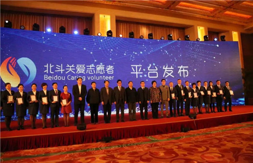 发布会现场,北斗关爱志愿者平台为来自全国的20位志愿者代表同时也是康力市场领导人颁发志愿者授权书。