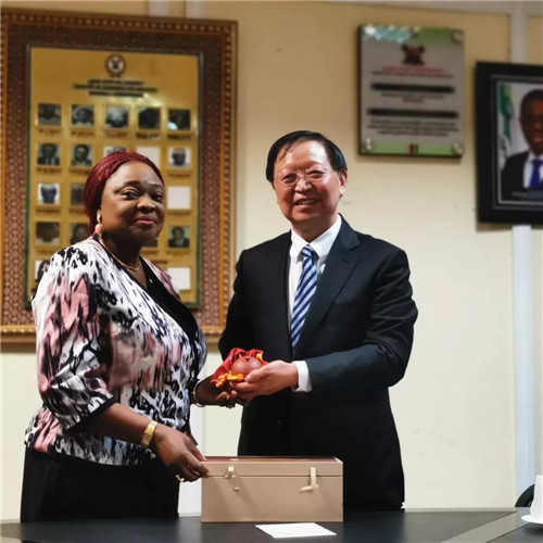 徐董与拉各斯州政府商贸投资部长Dr.Mrs.Lola Akande合影