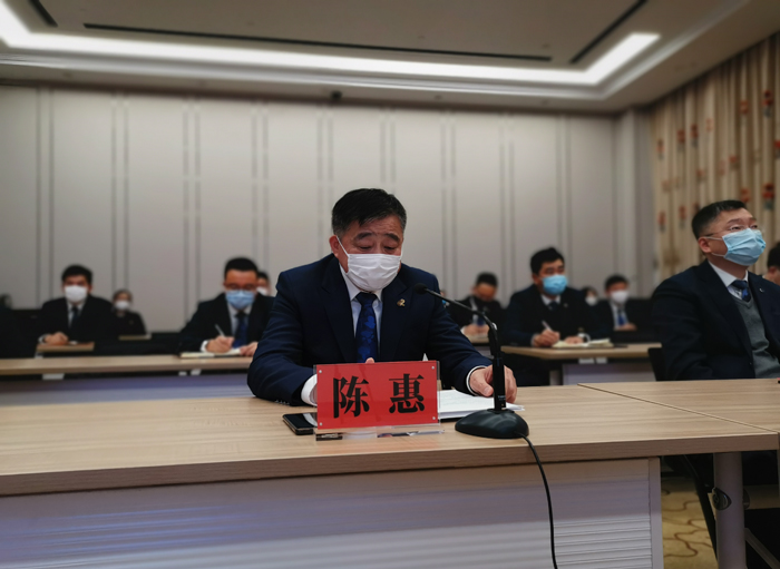 安惠公司董事长陈惠讲话。他指出,在新的开工模式下,只要是开工,就是工作状态。他希望大家自律、自管、自控,加强健康管理,提升健康素养,做好健康培训,提升格局,打开胸怀,实事求是,老老实实,把行业讲透,把产业讲通。他表示,安惠人始终坚持高质量发展的主基调,坚定不移听党话,跟党走,做好自己,适应环境,迎接新的机遇,共同为人类健康作出努力。