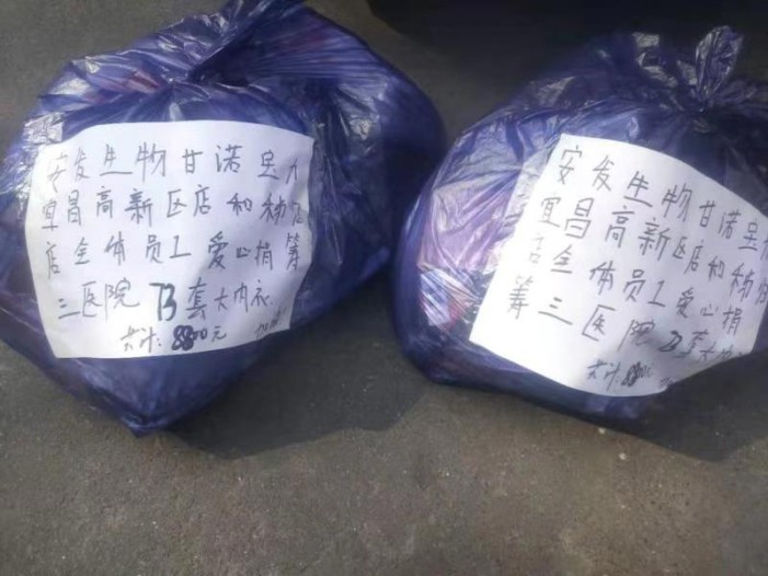 湖北宜昌团队领导人舒奇琳老师,带领宜昌团队的安发家人继承和发扬安发公司“传承爱,传承健康“的理念,为心苦奋战在一线、物资紧张的白衣天使们捐赠物资。