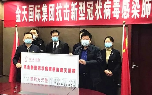 危难之际显担当。金天国际作为民族企业的代表,企业发展依附于社会,也理应服务社会,在社会需要的时候挺身而出,金天国际自然义不容辞。当前新冠肺炎疫情防控工作仍处于关键时期,特别是春节假期结束后,返岗复工带来的大范围人员流动,对各地疫情防控工作提出了严峻挑战。为进一步做好防输入、防传染、防扩散工作,坚决打赢疫情防控阻击战,保障人民群众身体健康和生命安全,金天国际积极投身疫情防控工作,在与相关部门扎实开展疫情防控工作的同时,将稳步做好返岗复工准备工作,为疫情防控增加动力,为经济健康运行注入活力,实现两手抓两不误。
