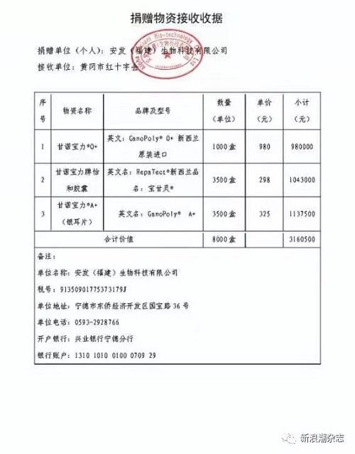 新浪潮记者了解到,同济医院专家组第一时间制定的《新型冠状病毒肺炎诊疗快速指南》中提到:“对于免疫功能较差的人群,例如老年人、孕产妇或存在肝肾功能障碍的人群,病情进展相对更快,严重程度更高”。高益槐表示:“此次,安发捐赠的产品,就是用于帮助提升免疫力,在用药后保护肝脏的。用在一线,对医务工作者是种保护,对感染人员也能帮助对抗病毒。”