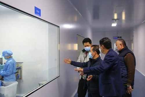 2月28日上午,即墨区潮海街道党工委于杰书记、即墨区工信办王季主任,前往康尔生物产业园,深入调研企业复工复产工作。在详细了解企业疫情防控措施及复工复产情况后,于书记表示,要深入贯彻习近平总书记重要指示精神和党中央、国务院决策部署,按照区委、区政府工作安排和要求,以实行分区分级分类防控为抓手,有力有序推动企业复工复产,统筹推进疫情防控和经济社会发展。