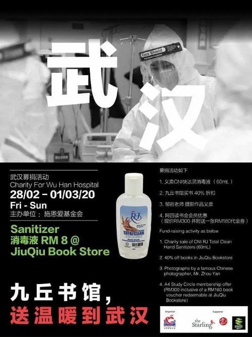 本次活动由施恩爱基金会主办、阿四读书会联办,所筹集的款项将捐赠给中国湖北武汉的抗疫一线定点医院,用于采购前线奋战医护人员所需的物资,如口罩、防护服、护目镜等物品。