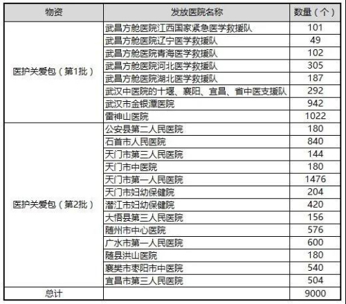 ♡防疫物资全部发放给湖北省内医院,以及各地前往武汉的医疗支援队使用。
