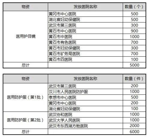 ♡2月26日,5000个医用护目镜和总计6000件医用防护服发放至各医院。