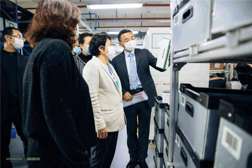 青浦区区委书记一行在福维克中国区总经理查生先生、福维克制造有限公司总经理吴珺女士的陪同下,参观福维克青浦工厂。