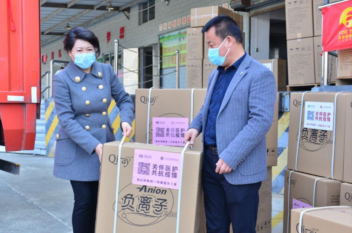 2月20日下午,广东省富迪慈善基金会理事长胡静女士偕同富迪健康科技有限公司一众高管、员工及爱心人士在位于佛山高明的富迪日用品制造公司,将价值一百万元的卫生巾整理打包,定点送达武汉市武昌区、青山区及同济医院的一线医护人员。