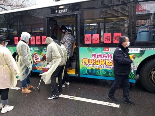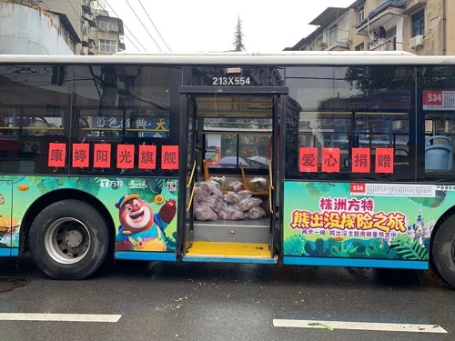3月2日傍晚,一辆公交车载着满满的物资,更载着阳光旗舰人满满的爱,在绵绵细雨中,从仓库驶向武汉中心医院。因疫情隔离,车辆并不能驶入医院,我们只能通过铁门将一箱箱物资递给医护人员,同时家人们为医护人员送上衷心的祝福。这次捐赠100000元整的物资中,既有饮用纯净水、各种新鲜水果、蔬菜,牛奶、肉类等,还贴心的为医护人员准备了各种能量充饥的零食,希望一线医护人员能够在巨大工作压力下保证最基本的身体健康。