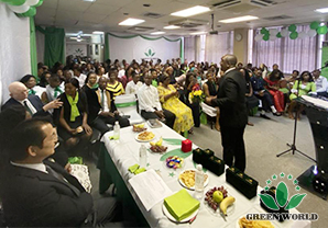 大会期间张良军总裁发表了讲话,详细诠释了GREEN WORLD 的含义,公司的使命、愿景和核心价值观,然后给经销商们分析了公司的优势和核心竞争力。张总同时传达了沃德绿世界在国际市场发展的大好形势,并公布了公司2020年在非洲的战略规划。他同时表示绿世界公司是一家国际化的公司,公司将在非洲区域继续导入新的产品系列,包括一些新的保健营养品,同时还将进一步导入护肤美容系列产品和农资产品。公司将加大对经销商的扶持力度,提高公司的专业化管理和服务质量。