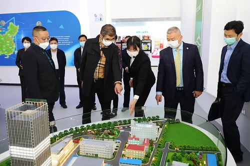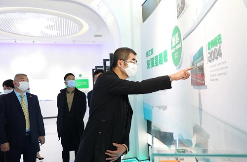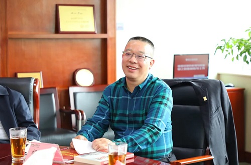胡国安董事长向湖南省政协副主席张大方介绍产品研发理念