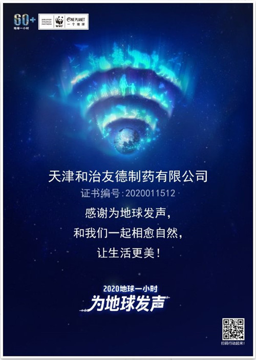 和治友德积极倡议支持2020地球一小时活动