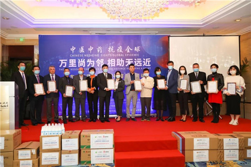 3月31日下午,由广东公共外交协会、广东省中医药学会和广东省中西医结合学会联合举办的“万里尚为邻相助无远近——广东中医药支援全球抗疫公益行动”捐赠仪式在广州举行,向全球疫情较严重的13个国家捐赠防疫物资。