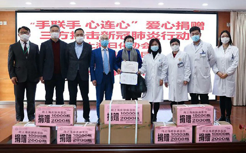 上海日化协会会长金坚发表讲话,感谢一线医护人员为疫情防控工作所作出的贡献,国内疫情能在极短的时间内得到有效控制,离不开所有逆行“白衣天使”们的倾情付出。随着海外疫情的全面爆发,上海作为一个国际化的大都市,正面临日趋严峻的境外疫情输入风险及防控压力,为全面落实总书记“外防输入、内防反弹”的防控工作部署,消毒物资在防疫工作中必不可缺。上海日化协会欢迎和支持绿叶等爱心企业为防疫工作贡献力量,并表示,目睹绿叶近年来的高速发展,希望绿叶未来研发更多日化精品,为推动行业科技创新和发展进步作出新的贡献。