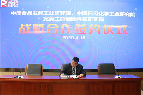 4月18日,完美生命健康科技研究院与中国食品发酵工业研究院、中国日用化学工业研究院、暨南大学举行战略合作云签约。