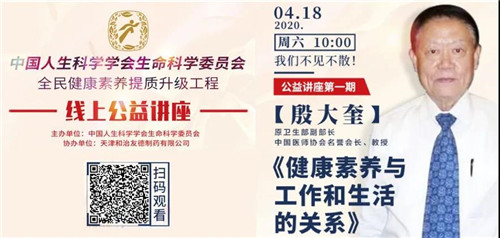 2020年4月18日,由中国人生科学学会生命科学委员会主办,天津和治友德制药有限公司承办的“全民健康素养提质升级工程”大型公益活动的首场线上公益讲座顺利举行。