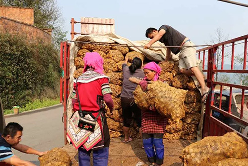 值得一提的是,2020年初“梯田云”结合产业融合发展,带着老百姓开始了发展小黄姜扶贫产业,实现产供销一体化经营。小黄姜产业是按照“政府+企业+基地+专业合作社+建档立卡户+互联网”的脱贫经营模式,由县委县政府牵头主导,红河元阳梯田云科技股份有限公司、元阳茗皓茶业有限公司统筹落地实施的产业扶贫项目。形成标准化种植、统一发放、统一管理、统一收购到精深加工的产业链,并在元阳建设了加工扶贫车间,开发小黄姜深加工产品,打造市场品牌,从经济效益、产业效益、社会效益和生态效益上为元阳县精准脱贫工作带来实质性的改变。截止目前为止,已有7个乡镇8个种植点,共计1570亩姜种送到了种植户手中,还有2030余亩陆续发放中。