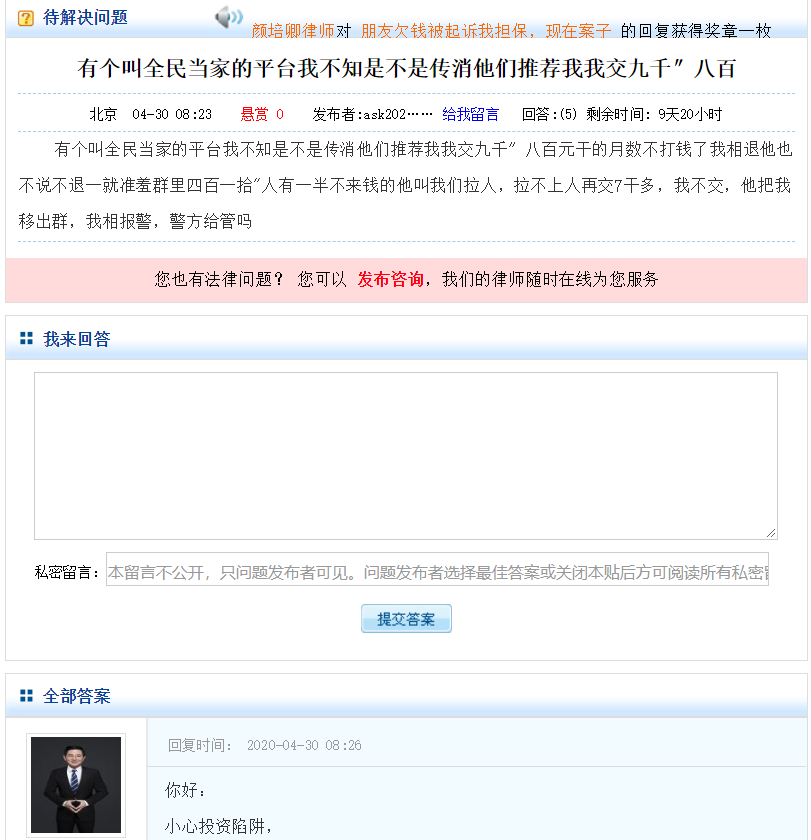 近日,社交财经在一款名为“全民当家”的微信订阅号上发现一则《致敬全民当家的一封真爱信》,该信中提到今年三月底全民当家被不少媒体质疑,甚至遭到匿名举报与被敲诈勒索。该公开信是由全民当家执行总裁CEO董建麟在5月2日所写。